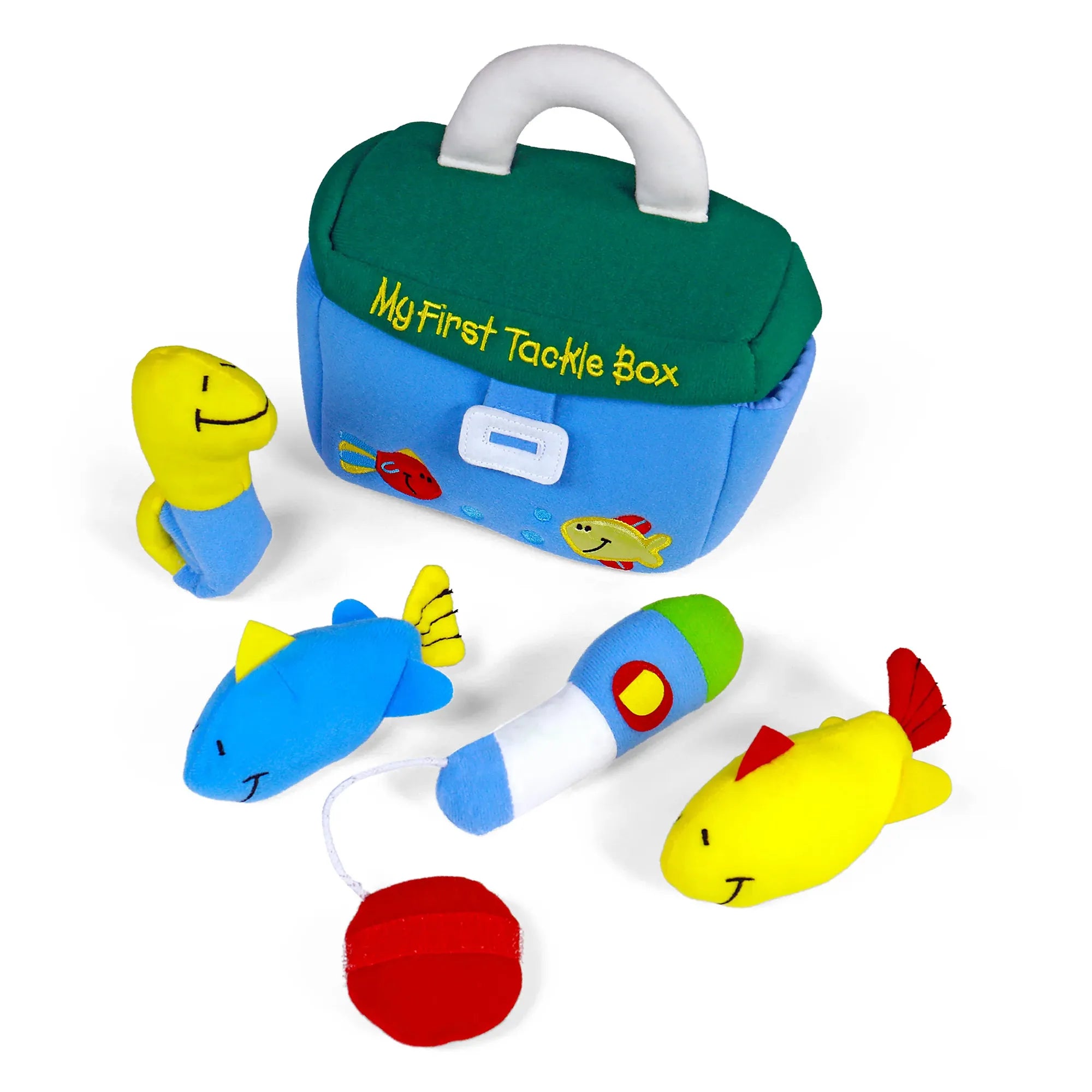 - Colourful and embroidered plush tackle box with a baby-safe touch-and-close fastener